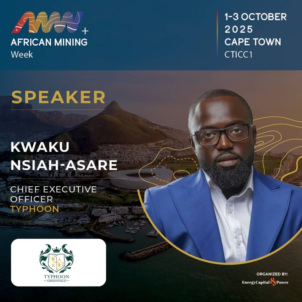 Kwaku Nsiah-Asare, CEO of Ghana-based gold mining company Typhoon Greenfield Development Limited (Typhoon) will participate at the upcoming African Mining Week (AMW) – Africa’s premier gathering for mining stakeholders – as a speaker.